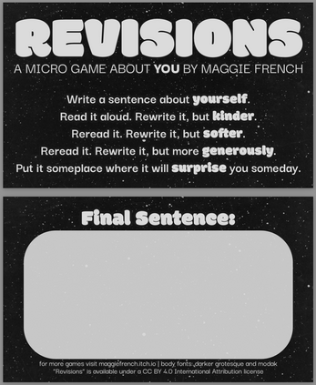 If you need some gentle guardrails for your revisions, check out my free game Everything Is A Draft.